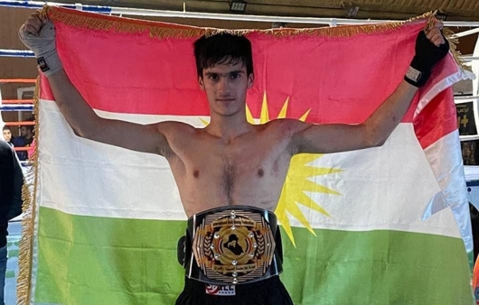 Kurdshop - Kurdish athlete Anas Imad Mahmud won first place in K1 style (martial arts and kickboxing) at the level of 40 countries in international professional wrestling.