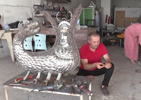 Nurettîn Çakmak yê Mêrdînî, jêrzemîna mala xwe weke atolyeyeke hunerî bikar tîne û herwaha ji xurdeyên hesin yên bi karhatî jî pêykerên cuda çêdike.