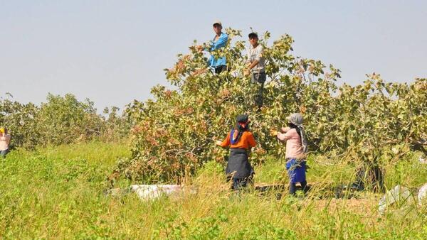 Karkerên ku ji bo çinîna fistiqan diçin kar, di bin germaya zêde ya li ser 45 dereceyî de, rojane bi heqdestê 400 lîreyê Tirkiyê ango 14 dolaran kar dikin