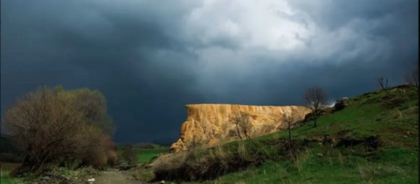 Piştî ku ev av li ser rûyê erdê diherike, bi demêre girseyeke bi şêwazeke kovik ya balkêş pêk tîne û girekî rengîn çêdike. Hebûna wî girî jî di nava xwezaya şîn ya wê herêmê de dîmeneke bê hempa ava kiriye. Herwaha ev avahiya ku kanî di nava wê de dikele, bi qasî 20 metreyan bilinde.