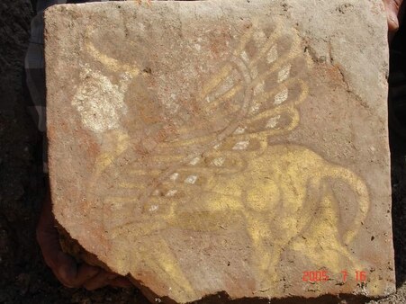 Tişta ku ji hemûyan ecêbtir e wêneya mirovekî bi bask, serê xêzkirî û rêdînek dirêj e ku baskên wî bo herdu aliyan vekiriye û destên xwe ji bo lahiyan bilind kiriye; Em pêka cilên wî dikarin bizanin ku yê serdema Maniyan e.