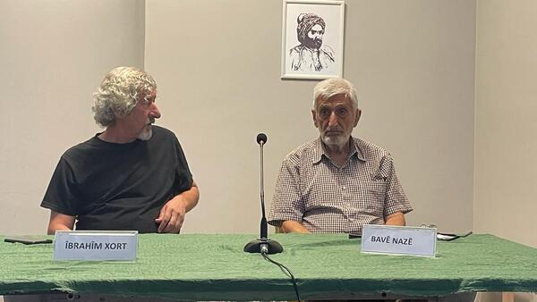 Moderatorê wî Îbrahîm Xort di navê re haya me beşdaran jê çêdike: Guhê wî baş nabihîze. Dengê xwe bilind bike ezbenî, dengê xwe, hinekî din jî. “Navê xwe binivîse,” dibêje ji min re Bavê Nazê, piştî ku gotûbêj bi dawî dibe. “Ji bo me şanazî ye ku îro em li vir li te guhdarî dikin,” dibêjim jê re. Navê xwe dinivîsim, B-e-h-r-a-m. Behram. Û îmzeyek: “Hêja Behram, ez bi xwendina te kêfxweş dibim.”