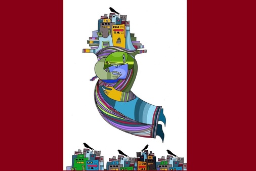 لەو تابڵۆیەدا ژنێک دەرکەوتوووە کە جەستەیەکی زۆر ناڕێک و خواری هەیە و لە جەستەی مرۆڤێکی ڕاستەقینە ناچێ و لەتوکوت کراوە. بۆ وێنە هەریەک لە دەستەکانی لە جێگایەکی ناتەریب لە جەستەوە هاتوونەتە دەرێ و بە یەکێک لە دەستەکانی خەریکە خۆی دەپارێزێ و دەموچاوی بووەتە دوو لەتی سەوز و شین. هەروها دەبینرێ کە ئەو ژنە بەشێک لە وڵاتەکەی کردووهتە تاجێک و لەسەر سەری داناوە، ئەو بەشەی دیکە لە وڵاتەکەشی کە ئاژەڵەکانیشی تێدایە، خەریکە بەسەریدا هەڵدەفڕێ و بە لەتێک لە دەموچاوی کە چاوی لە خوارێیە، پاسەوانی دەکا. ئەو لەتەی دیکە لە دەموچاویشی بە دەستێک گرتووە و خەریکە چاو لە تاجەکەی دەکا. بەوجۆرە ژنی ناو تابڵۆکە تاجەکەی دەپارێزێ.