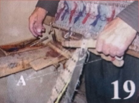 کاری ئەو دارە ئەوەیە: کاتێ تەنراو دێتە تەواو بوون و جەمسەری دوایی ڕایەڵ لە گورد نزیک دەبێتەوە، چونکە سەری ڕایەڵەکان لێک گرێ دراوە و بە هێچکەوە بەستراوە و وێکهاتووەتەوە، ئیدی بە ئاسانی ناچێتە ناو گورد و هەندی پتر لە نیوگەزی ڕایەڵەکان لە پشت گورد دەمێنێەوە و خۆ نادەن بە دەستەوە. (بڕ :وێنەی22)