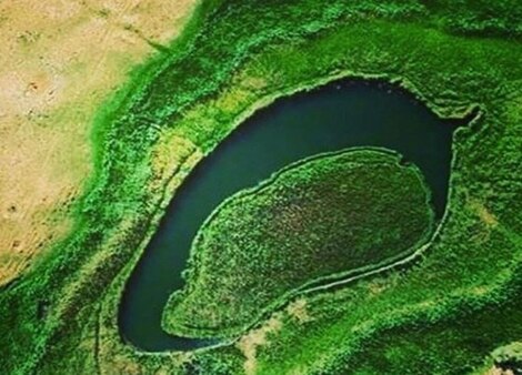 ئەو چیمەنە ٨٠ میترییە وەکوو بەلەمێکە کە کاتێک بای دێت لەسەر ئاوەکە وەجووڵە دەوکەێت و دەڕوات. هەر بۆیە ناوی ئەو شوێنەیان ناوە "چیمەنی بزێوی چەملی". ئەو چیمەنە با بۆ هەر لایەک بێت ئەویش بۆ ئەو شوێنە دەڕوات. کاتێک ئەو چیمەنە دەجووڵێک دیمەنێکی سەرنجڕاکێش دەخوڵقێنێ کە ساڵانە سەدان گەشتیار بۆ دیتینی ئەو دیمەنە بۆ لای خۆی ڕادەکێشێ. چیمەنی بزێو لە شێوەی کەوانەیەکە کە چواردەوری بە ئاو گەمارۆ دراوە کاتێک چیمەنەکە لە ناوەندی ئاوەکەدا جێگیر دەبێ، لە نێوان 5 هەتا 8 میتر لە کەنارەکانی تاڵاوەکە دوو دەکەوێتەوە و ئەمەش مەودایەک ساز دەکات بۆ ئەوەی گەشتیاران بتوانن لە ناو ئاوی تاڵاوەکەدا مەلە بکەن.