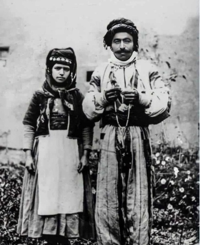 The beauty of Kurdish women's clothing is reflected in Archibald Roosevelt-Ed's views: "Women, whose clothes are no less attractive than men's, walk in a happy and proud state and while holding their bodies upright, they carry water jugs on their heads. Their head scarves are blue." (4)
