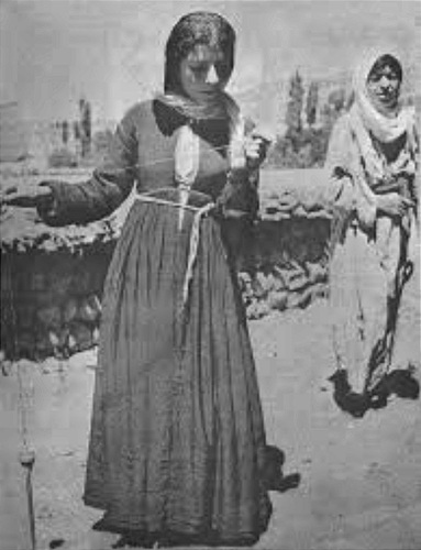 For example, among the tourists who paint a vivid picture of Kurdish women's clothing in their minds, Gaser Darwill describes the clothes of women who lived in tents as nomads: "They wear long dresses that have a crack on the top and are carried with a white belt that both ends of it are hanged down their waist. Their head scarves are made of white linen fabric hanging from both sides of the face, falling to the middle of the belt. The scarf is held with a thin brown silk band that is wrapped around the forehead." (1)