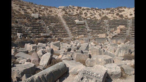 In the ancient monuments of Syros, there is a theater 112 meters wide and consists of 24 rows of stairs. The stage is 48 meters long. It dates back to the 12th-13th centuries AD. The city has a principal plaza, bathroom, and building of the most advanced and innovative standard. At the bottom of the plaza is the tomb of the Greek commander, and a tall building in the form of a hexagonal dome has been built over the tomb. The city is surrounded by a wall.
